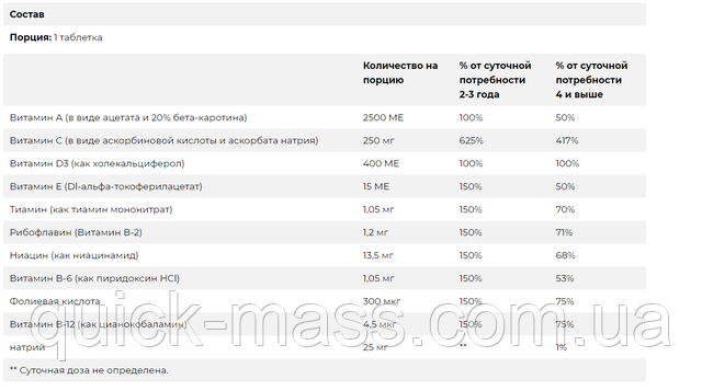 Сорбітол, сахароза, стеаринова кислота, діоксид кремнію. Містить <2%: штучних барвників (FD & C червоний # 40, FD & C жовтий № 6, FD & C red # 2 Lake), аскорбіл пальмітат, bha, bht, лимонна кислота, дикальцийфосфат, dl-альфа-токоферол, желатин , гуміарабік, гідроксіпропіл метилцелюлоза, стеарат магнію, натуральні ароматизатори, крохмаль, сукралоза, рослинне масло, вода.